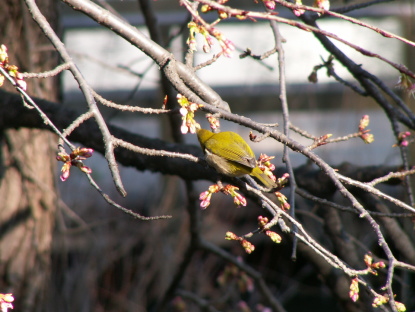 カンザクラの蜜を吸う 横浜市篠原園地 070224