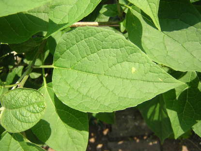 | 葉は対生し、葉身は3角状心形あるいは広卵形。縁には低い鋸歯がある。若い枝や葉脈上に軟毛がある。 傷を付けると、青臭い臭気があので名がついた。不快感の程度は人によって違いがある。 ★薬効★リウマチ、下痢、高血圧。民間療法。小枝ごと葉を切り取り日干しにしたものを煎服する。葉に殺菌作用があるので、腫れ物などの洗浄に使用した。 |