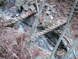 沢沿いまで下りると、沢歩きと高巻きのような印象になる。ルート判断を慎重にする必要がある。沢を跨ぐようなところには、道標があるので間違えることはないと思う。 |