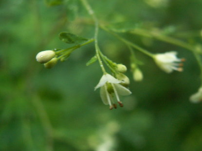 枝先に円錐状集散花序をつけ、白い小さな花を多数つける。