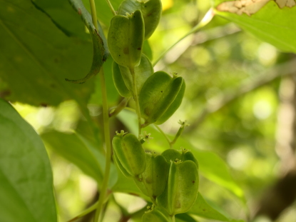 林道脇などで他の植物などに絡み、上を覆うようなかたちでまといつく。写真は、林道のフェンスに絡んで這いあがっている。絡んだ蔓を伸ばして地上3〜4mの樹木なら這いあがって覆ってしまう。
